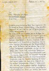 Dear Mother! Some time has passed since I wrote last; so it is time to write again. First of all I want to tell you that I received the silver wounded badge. It was presented to me by the senior staff doctor. I was very elated about it. I don't know when I will be back in Germany and in Jagstfeld, but I am hoping it is soon. I am healing nicely. Don't worry about that. Until recently I had fever, but that has normalized now. I am writing you - - - (CUT OFF, MAYBE: from a military field post office) ....which is 29786. Try it and we will see if your letter will reach me while I am still here. I want to know that you are still alive and that you are still in good health. It has been 67 days since I was wounded - I need mail from home. You know it is not easy to be tied to the bed when one does not know what is going on at home. I am hoping that you got through the air raid alright and that no one was injured or killed. Best wishes, dear Mother, also for Herbert and Guenther, Klara and the two little - - -" (CUT OFF) |
