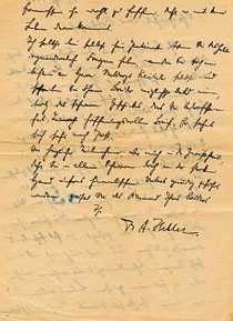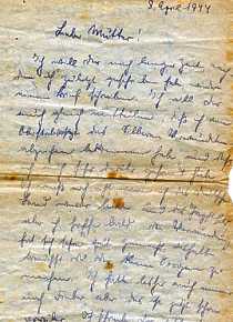Dear Mother! Received your sweet letter. I thank you. Lately I had no opportunity to write. I am doing fine and I hope to be soon transferred to a hospital in the home land. Until now my fever was too high to allow a transfer. My wounds are healing. But my appetite is missing and I eat very little. I will let you know as soon as I can about my transfer. Until then greetings to all of you, Willi. |