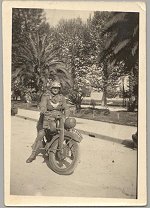 | Soldbuch and photo of Kriegsmarine Fahnrich (Ingenieur) Albert Eggenhoffer. Page 25 shows the entry that Eggenhoffer "arrived Africa 8.1.1942" and "left Africa 17.5.1943". He was awarded the AFRIKA cuffband on 1.4.1944 at a time when he was assigned to a Schnellbootsflotilla in the Adriatic. The photo is interesting in that he wears not only the AFRIKA band, but also 3 E-Boat badges! Aditionallly, the photo is dated in winter, yet he is wearing his Kriegsmarine tropical tunic. Eggenhoffer either had a sense of humor or no sense at all! | |