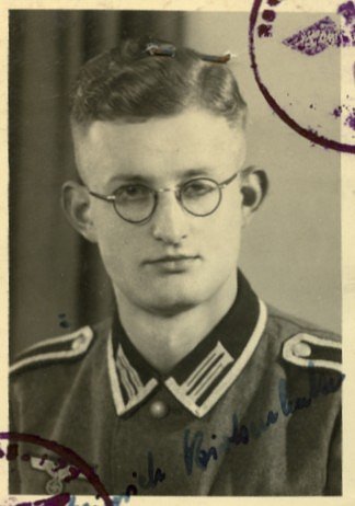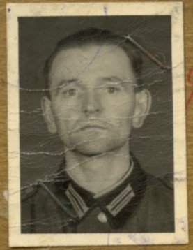 Soldbuch entry for Obershirrmrister Heinrich Birkenhake of the 122. Infanterie Division, who is pictured at right. His entry at the bottom of the page is interesting in that it does not state the award as usually seen, but rather states "Conditions for the Kurland award are fulfilled". Note also that this entry was recorded on 11.5.45 - several days after surrender. Birkenhake would die in captivity less than a year later, in January 1946. Courtesy of the Ian Jewison collection. |