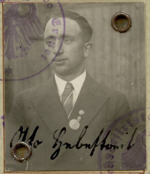 | Another pair of photos (portrait is from his Wehrpaß) showing the Soldbuch entry for Oberwachmeister Otto Hebenstreit and the alte Hasse. This award was made on 8.5.45 - the last day of the war. Hebenstreit was a well decorated veteran of the Werfer Regiment 70, having previously earned the EK II and EK I, the Allgemienes Sturmabzeichen (GAB) and the Kuban Shield. Courtesy the Ian Jewison collection. |