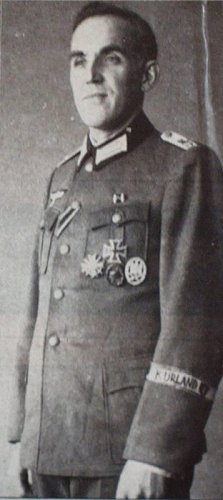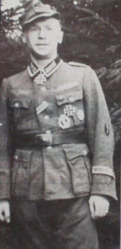 A very rare photo of the KURLAND band worn on the parade Waffenrock. The Officer and Ritterkreuztraeger is Hauptmann Günther Braake who commanded a battalion in the 422. Infanterie Regiment of the 126. Infanterie Division. The fact that Braake wears his parade uniform so close to the end of the war - within less than two months - is indicative of how military life continued in many ways, despite the imminent collapse of the Third Reich. On this occasion Braake was most probably on convalescent or authorized leave out of the bridgehead. Having already received the Wound Badge in Gold in May 1944, he was again wounded in December 1944 and yet again in February 1945. It is from this last wound that he may have been sent home recovering in March 1945.