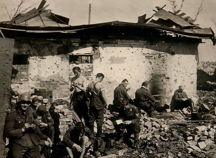 Here is another very nice shot from Cholm that shows one of the German soldiers duty's inside the pocket - hunting Lice, etc ... Note also the ruins that are present and the damage to the walls, from both bullets and shrapnel. These where the circumstances that the soldiers had to live in and was the daily reality at Cholm.