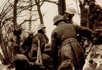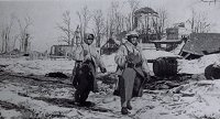 In the morning of May the fifth, 1942, came the end to the actual encirclement, thanks to the efforts of the Gren Regt. 411 (under the lead of Oberstleutnant Tromm ) and a few Sturmgeschutze. During the encirclement the Germans outside the pocket never stopped trying to open the city of Cholm but failed in al the cases (main reasons; not sufficient troops and weather conditions). For the encircled troops the battle was not over as they had to fight quite a few more days with their liberators to stabilize the front (until about mid-June), and these days of Battle cost the life of many more soldiers (amongst them the liberator Oberstleutnant Heinrich Tromm , Killed in action on 6/18/1942 , about 2 km. Northwest of Cholm and buried on 6/21/1942 ) . On 5/5/1942 when the relief came the pocket was heavily reduced in size (see maps of the Cholm area) and there were only about 1500 men able to fight (from a total of 5500). The city of Cholm was held another 2 years in German hands and was abandoned on February 1944 when the German lines where folded back in a retreating movement. During these 2 years the fighting never cease but could be held and the Russians did not try to force a major breakthrough at this point of the front. For many of the survivors the suffering was still not over, because of unhygienic situations the deadly illness "Flecktyphus " broke out amongst civilians and spread quickly in the rows of the defenders causing many of the lucky survivors long stays in various hospitals .