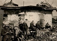 After the main hospital post (in the beginning located in the eastern part of the city) burned down and with most buildings becoming ruins the wounded were transported to the western part (which was the most secure area during the whole battle) in the so called "Haarnadelcurve". The disadvantage of this was that the buildings where made of wood and with no cellars, so whenever a shell exploded near or hit some of the buildings there was no cover for the wounded from wood fragments and splinters. It was absolutely no rarity that a person became wounded a second or third time by such fragments before being able to recover from the previous combat wound.