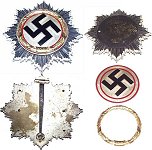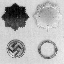 A swastika in black enamel bordered silver is fixed on the disk by means of two or four prongs situated on the ends of the arms.  Between the two red bands is found a gilt or silvered wreath.  The year 1941 is embossed at the base of the wreath.  The wreath is fixed with four rivets.  In some cases the wreath rivets maintain the whole cross (ex Zimmermann), in other case they just hold together the wreath , the circle and the black star.  The whole is held on by a number of rivets (4, 5, 6 or 10) depending on the manufacturer.