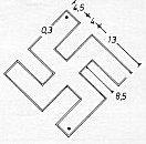 The swastika is in hollow stamped metal, silvered, in convex form. On the reverse are found 2 attachments ( 4 for the type by DESCHLER ). The cross is black enamel bordered in silver.