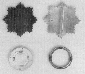 The hinge itself may be a bent piece of metal soldered in a recess at the top of the star (types marked ‘’20’’, ‘’134’’, DESCHLER), or more simply, soldered directly onto the star (Juncker and Godet types).  The pin is fixed to the hinge by a cross-pin.  The construction of this decoration is the most complex of all the military decorations of the Third Reich.