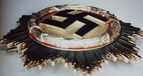 The backing star is either heavily plated tombak, or according to some sources, real silver and invariably has a burnished finished rather than the matt silver finish of later pieces.