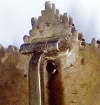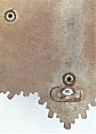 Note the pin/hinge fittings are attached to the surface and not recessed. The firms mark "20" is stamped on the under surface of the pin.