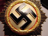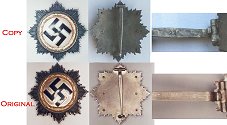 This rather rare decoration has been copied, like all German decorations.  The complex construction of the originals permitted spotting copies rather easily, in particular those which are not riveted.  The quality of the wreath details are also a good way to spot the difference, the wreath has to be not too rounded and compact, but should show well the detail of the laurel leaves. The pin-back should be massive and of good quality, identical to the currently authorized version. Certain copies have the same construction as the model of 1957, but with a swastika. Nevertheless, for some time now, we have remarked upon the appearance of a new generation of copies which dangerously approach the originals in construction and in quality.