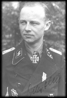 Presentation, Wear and Documents The badge was presented in a small black box with a white satin lid. It was presented on an Iron Cross 2nd Class ribbon, with this ribbon folded underneath the base. Regulations called for this clasp to be worn on the second buttonhole of the tunic, on the ribbon of the Iron Cross 2nd Class. Even though the swastika is not mobile in the award, the method of wear makes it look like it is a mobile swastika (because it is slanted on the ribbon). If the recipient held the 1939 Iron Cross bar to the Iron Cross 2nd Class 1914, only the Honor Roll Clasp was worn. A paper certificate was issued with the Clasp, and the proper annotations were recorded into the individuals’ file. To the right is Hauptsturmführer Willi Hein of the SS Pz. Rgt. 5 "Wiking". He received the Knights Cross on May 3, 1944, after receiving the Ehrenblattspange on November 15, 1943. He wears this last mentioned decoration on according to regulation the buttonhole of its crossed tunic in this photo taken in 1944. |