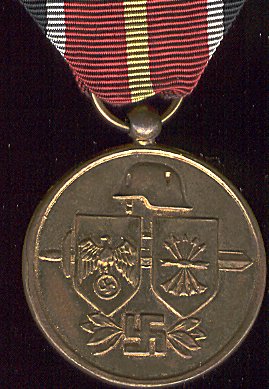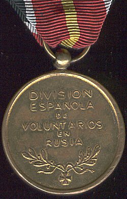 The medal was presented to all Spanish Volunteers who fought against bolshevism in Russia. Because the swastika was not outlawed in Spain following the war, veterans continued to wear their awards as originally designed. This meant that there was a market for replacements, so this medal was in production after the end of the war. They may be discerned from one another by the fact that as the initial production run had a space between the talons of eagle, while the later produced ones did not. These later awards, however, are not considered reproductions as the Spanish Government officially sanctioned them.