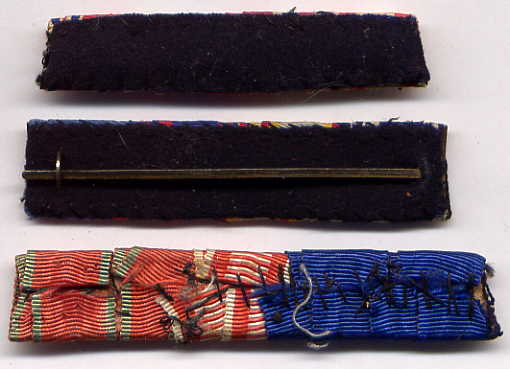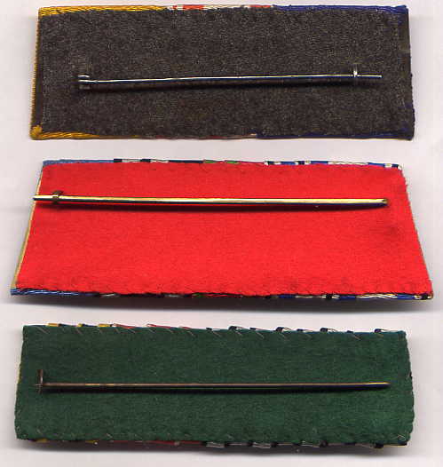 As previously mentioned, this was the only style worn by army officers until 1915. Obverses and reverses of a number of examples are shown here, with notes where there is something out of the ordinary. Most of these Old Style ribbon bars used tinned steel metal backings, but brass may also be found less commonly.