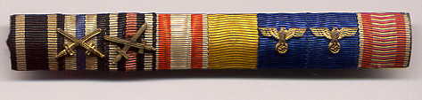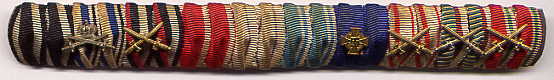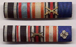 | The second ribbon on the bottom bar is for Baden's Military Karl Friedrich Merit Order-288 awarded in WWI |