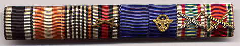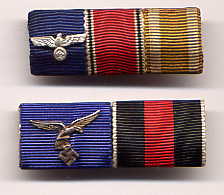 Such confusion did not affect the younger soldiers. Junior officers and NCOs with service only dating from the Weimar or early Third Reich years (these military long service awards were suspended in 1940 for the duration of the war) could scarcely hope for more than a 4 years service medal or one or two of the so-called "flower campaign" medals of 1938 and early 1939. Without Imperial service and awards, it is highly unusual to find ANY "all Third Reich" ribbon bar with more than 5 or 6 German awards, at most.