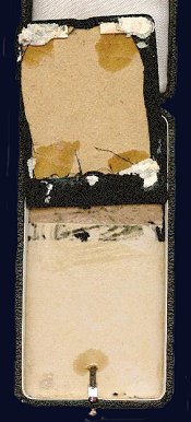 - The glue used to construct original cases has a distinct look. It is normally yellow or brown and is almost always quite brittle and cracked, often looking like a mud flat on a very hot day. The best place to observe glue remnants is under the pressed cardboard insert. Obviously, this is problematic on cases which have this piece still firmly attached. On many original cases however, the cardboard insert will be loose as a result of the glue cracking, or an overzealous collector breaking the seal in an attempt to determine originality. Modern epoxy based glues normally dry clear and will not crack and craze like original glue. While on the subject of a case’s innards, it should also be pointed out that if one encounters quality control or inspector marks they should be in pencil vice ballpoint pen!