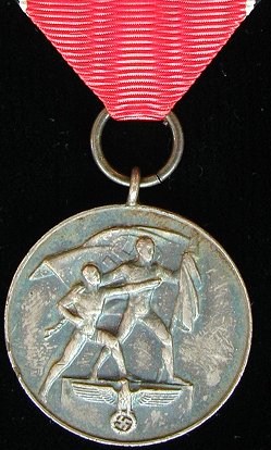 Instituted on May 1, 1938, the medal commemorated the return of Hitler’s homeland to the German Reich. The move was the first in Hitler's quest for "Lebenraum", and it strengthened German flanks while weakening those of Czechoslovakia. German troops crossed the border on March 12, 1938, without meeting any resistance. The stage had been set by a series of "incidents" provoked by National Socialists in Austria, and diplomatic pressure and ultimatums set forth by the German Government. This first action, while perhaps raising suspicions, did not cause general alarm in the world community. After all, it seemed to be done by choice of the Austrian people who were German speaking.