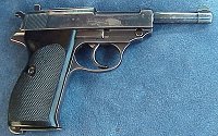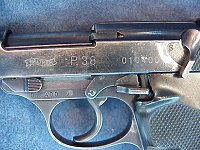 "Zero Series" - As stated earlier, the first production P38s were part of a Zero-series, which have the Walther banner, and serial numbers from 01-013000. Below is pictured an example of the Zero series P38 produced by Walther.