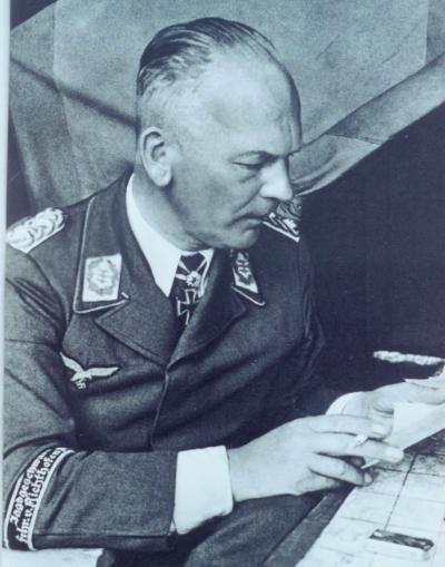 Generalfeldmarschall Wolfram Frhr. von Richthofen wears the “Jagdgeschwader Frhr. v. Richthofen Nr. 1 1917/18” cuffband indicating service with that unit during World War 1.