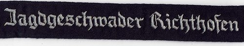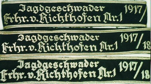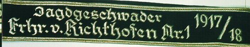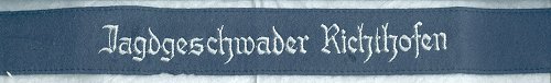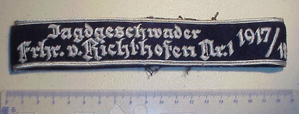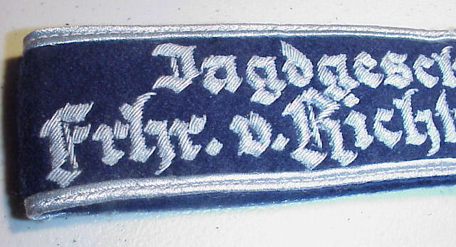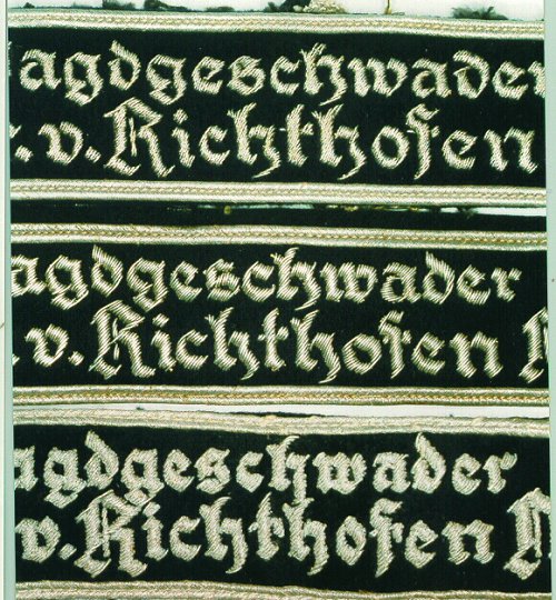 The band featured the inscription "Jagdgeschwader Richthofen" in Gothic script