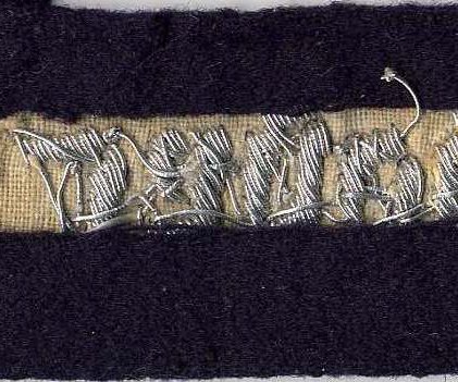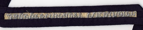 This commemorative cuffband was introduced by Luftwaffen-Verordnungsblatt Nr 12, Order Nr. 165 on 23 April 1935. It was to be based upon the recently introduced unit cuffband for members of Fliegergruppe Döberitz, and consisted of a dark blue cloth band with the inscription “Jagdgeschwader Richthofen” executed in fine aluminum wire, hand-embroidered lettering and having a 3mm wide strip of Russia-braid edging at either border.
