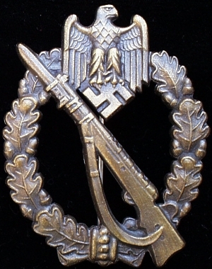 he Infantry Combat Badge, more commonly referred to as the Infantry Assault Badge, was designed by C. E. Junker of Berlin and instituted on December 20, 1939 by Generaloberst von Brauchitsch. The initial class was instituted in silver and decorated foot infantry who participated in combat action earning a degree of experience that qualified them for the badge.