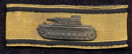 The tank destruction badge was awarded to soldiers who destroyed an enemy tank single handedly by a hand held weapon. Anti-tank units were not eligible for this award.
