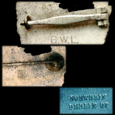 oxidized silver with a gold oak leaves wreath surmounted by the national emblem