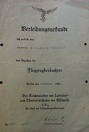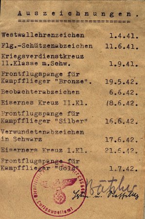 Awards were also entered into the airman's Soldbuch and Wehrpass ....