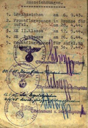 Awards include Honour Goblet (12.9.1941), German Cross in Gold (14.2.1942),