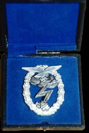 Presentation, Wear and DocumentsThe Luftwaffe Ground Assault Badge was awarded in either a black leatherette box with a silk liner and blue velvet base, or a paper packet. An authorizing document was presented with it, and the proper annotations were made in the soldiers’ Wehrpass and Soldbuch. As with most Wehrmacht War Badges, the decoration was worn on the left side of the uniform. Award CriteriaThe award was presented to Luftwaffe field divisions who were engaged in combat along side their comrades in the land armed forces. There were twenty-two fully equipped Luftwaffe field divisions, among them the famed and elite “Herman Goring” division, who were under the direct command of the Goring himself until July of 1944. The Divisions were controversial as many in the Wehrmacht command thought them a drain of precious resources that could have been better utilized if employed in the ever retreating Heer forces. Even though there were skeptics, it must be stated that the better trained Luftwaffe divisions gave a good account of themselves in land combat alongside their brothers at arms. |