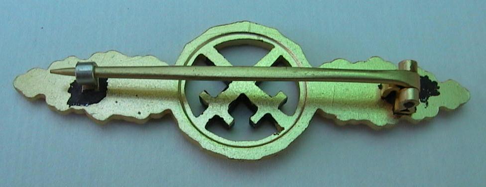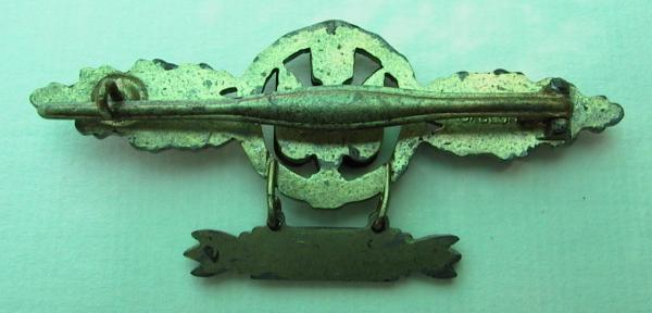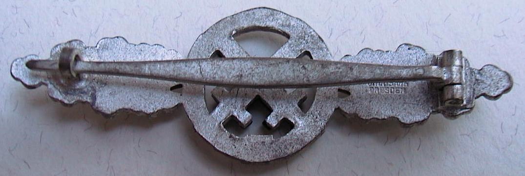 In 1957, along with other WW2 military awards, the West German Government authorised the wearing of clasps of modified design (read - omission of swastika) by Luftwaffe veterans. Note the construction of the badge - all 1957 awards are said to have been manufactured by the one firm - Steinhauer and Luck.