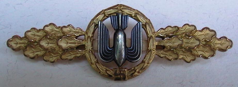 The central device of the winged bomb denotes the award for crews of Heavy, Medium and Dive Bombers.  The clasp illustrated is a high quality award manufactured by G.H. Osang of Dresden.Note that clasps were also embroidered in silver wire (officers) and cotton threads (other ranks) as a private purchase option - these are very rare on the collector's market.