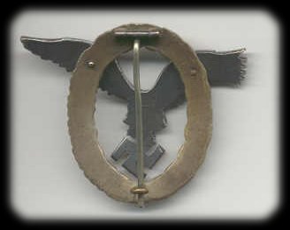 Note: Juncker also produced the very first pattern of aircrew badge. This piece has a horizontally oval wreath and a large gangly looking eagle. Because it is actually the precursor of the Combined Pilot Observer badge, it will not be covered.
