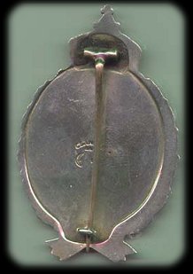 Nobody knows exactly what OM stands for, but their pilot badges are very high quality and quite desirable. OM badges have a distinctive look to the talons of the eagle. While most other makers used patterns that make the eagle look like it is actually clutching the swastika in it’s talons, OM eagles have talons that look one dimensional…almost like two three pronged forks. OM badges also have a small circular cut out between the eagle’s legs. OM badges have barrel hinges and wire catches, and are deeply marked with the letters “OM” in small incuse relief script. Original OM pilot badges are very rare and valuable.