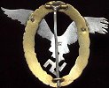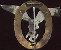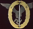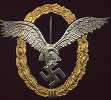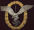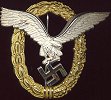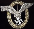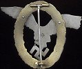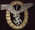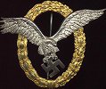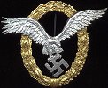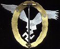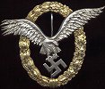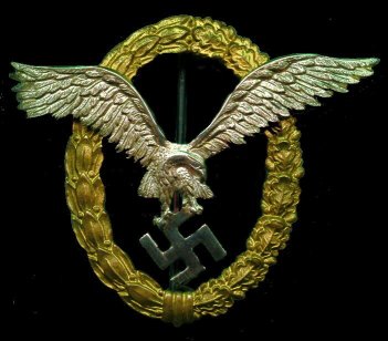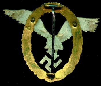 The badge's measurements and design are identical in every respect to the Pilot‘s Badge. It consists on an eagle in flight clutching the swastika, surrounded by an oval laurel and oak leaves wreath. The difference between the Pilot-Observer and the Pilot's badge is that the eagle is polished silver and the wreath finished in gold. The eagle is soldered to the wreath by 2 round rivets, and sometimes has a space between the claws while others not.