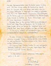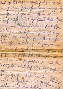 Dear Mother! Some time has passed since I wrote last; so it is time to write again. First of all I want to tell you that I received the silver wounded badge. It was presented to me by the senior staff doctor. I was very elated about it. I don't know when I will be back in Germany and in Jagstfeld, but I am hoping it is soon. I am healing nicely. Don't worry about that. Until recently I had fever, but that has normalized now. I am writing you - - - (CUT OFF, MAYBE: from a military field post office) ....which is 29786. Try it and we will see if your letter will reach me while I am still here. I want to know that you are still alive and that you are still in good health. It has been 67 days since I was wounded - I need mail from home. You know it is not easy to be tied to the bed when one does not know what is going on at home. I am hoping that you got through the air raid alright and that no one was injured or killed. Best wishes, dear Mother, also for Herbert and Guenther, Klara and the two little - - -" (CUT OFF) |